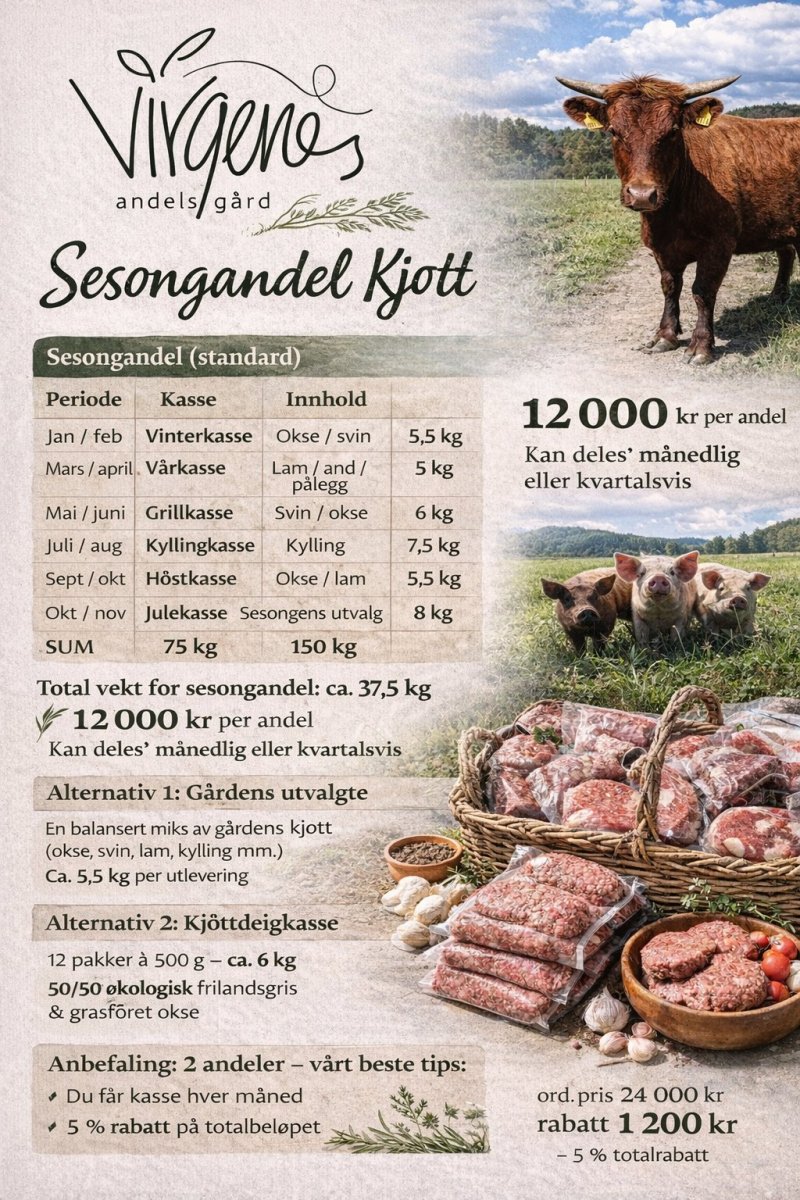 MEDLEMSAVGIFT VIRGENES ANDELSLANDBRUK 2026 kr 150,- PER HUSSTAND. Vi skal etablere en forening for å utvikle gården videre.