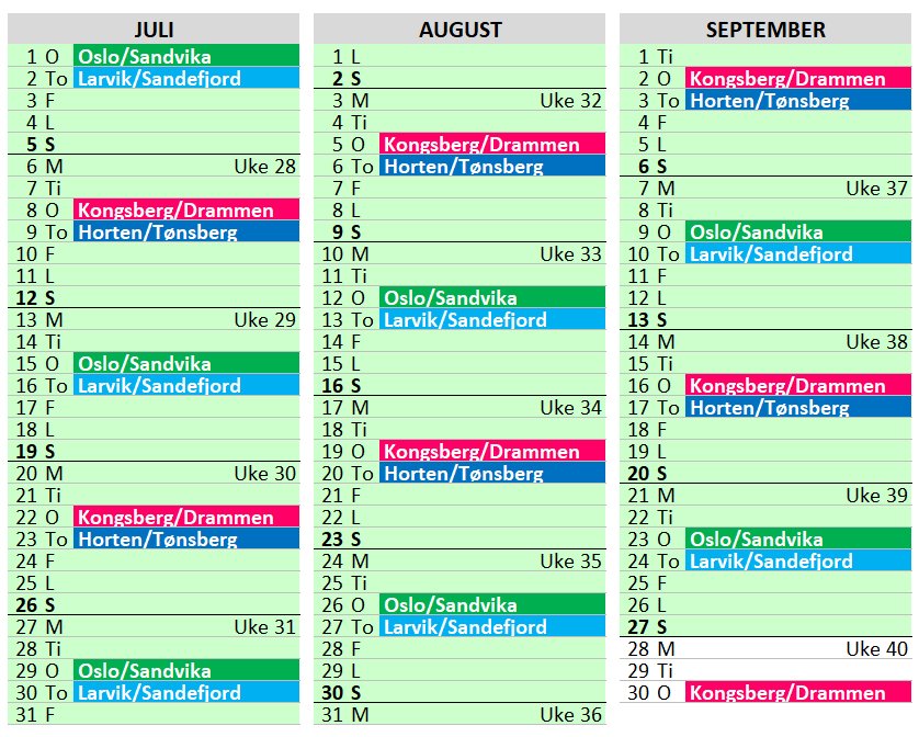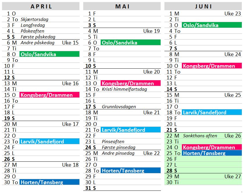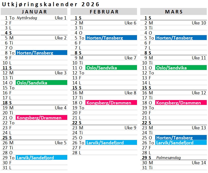 UTKJØRINGSKALENDER OG HENTETIDER 2026: